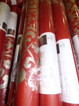 Eleven Rolls of Red and Gold Damask Floral Vinyl Wallpaper Design: CCA04