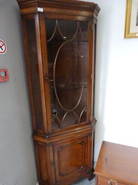 Fine Quality Mahogany Corner Cupboard with Two Glass Shelves (Slight Damage)