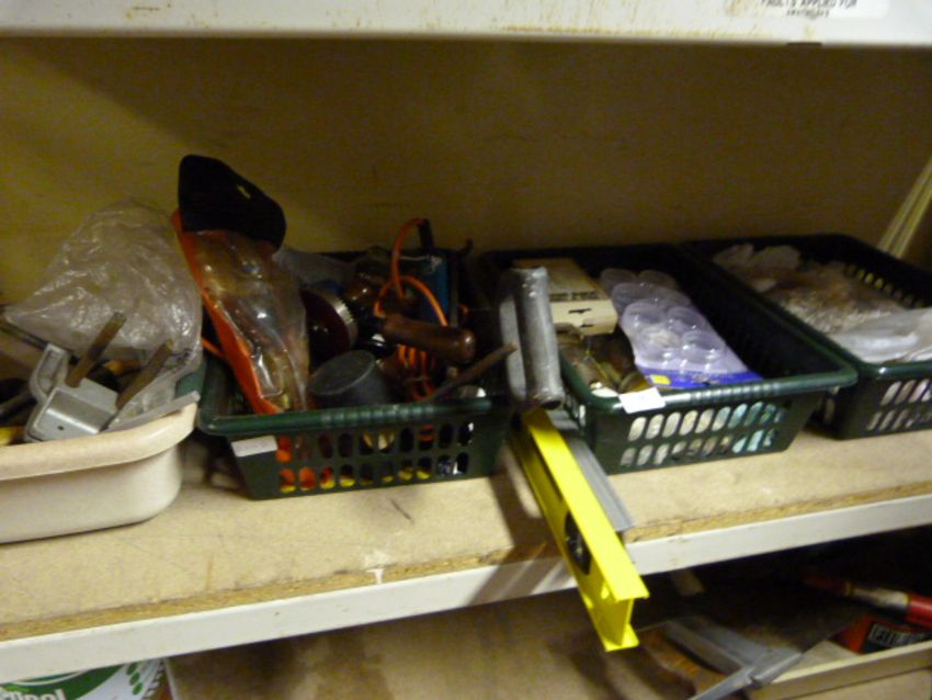 Four Baskets Containing Assorted DIY Tools, Ironmongery, Etc