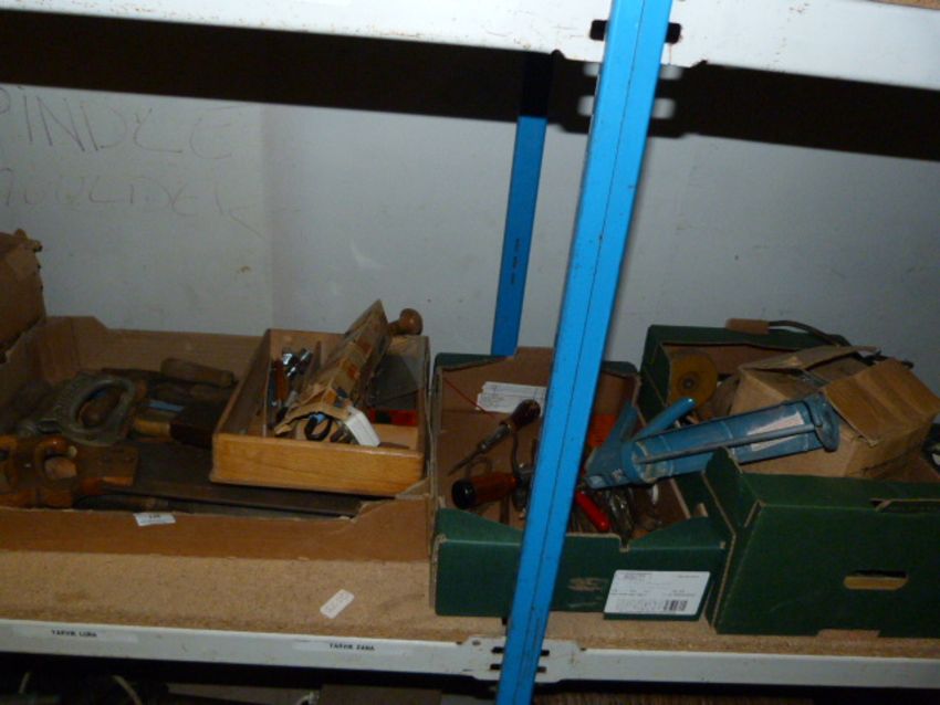 Three Boxes Containing Assorted Joiners and Other Hand Tools Including; Saws, Mallets, Etc