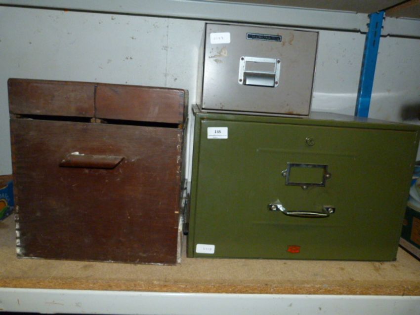 Wooden Storage Box and Two Metal Filing Drawers