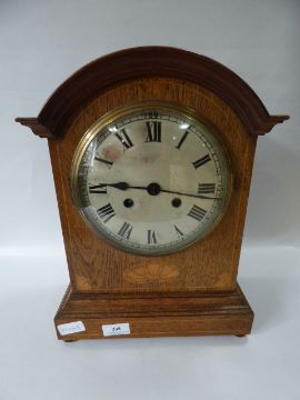 Oak Cased Dome Topped Inlaid Mantel Clock