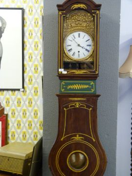 French Long Case Coromose Clock with Hand Painted Detail, Brass and Enamel Dial