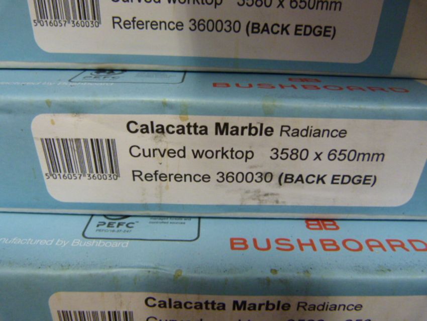 *Prema Bushboard Calacatta Marble Curved Worktop 3580mm by 650mm Ref:360030