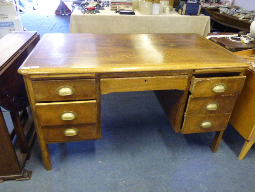 Oak Double Pedestal Desk with Brass Handles