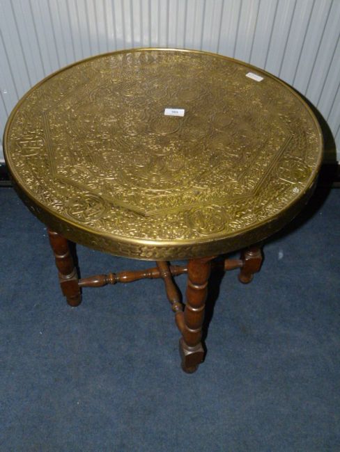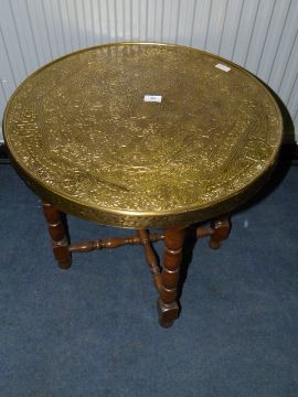Brass Top Table on Oak Frame