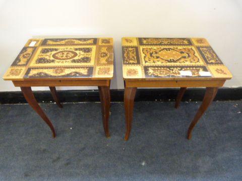 Pair of Musical Inlaid Needle Work Tables