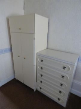 Cream Wardrobe and a Chest of Five Drawers