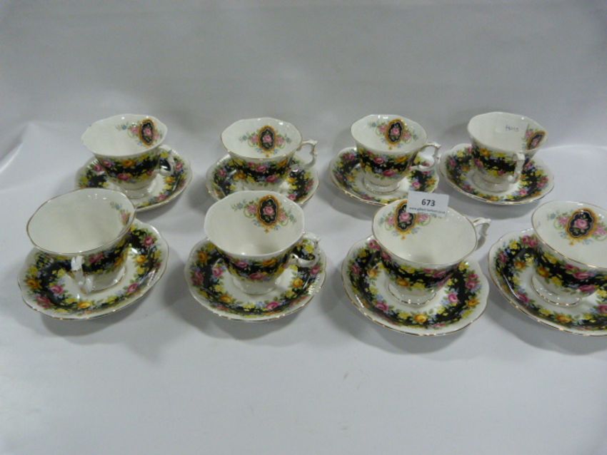 Eight Assorted Royal Albert Tea Cups and Saucers
