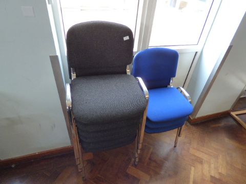 *Six Charcoal and Three Blue Stackable Office Chairs on Chrome Frames