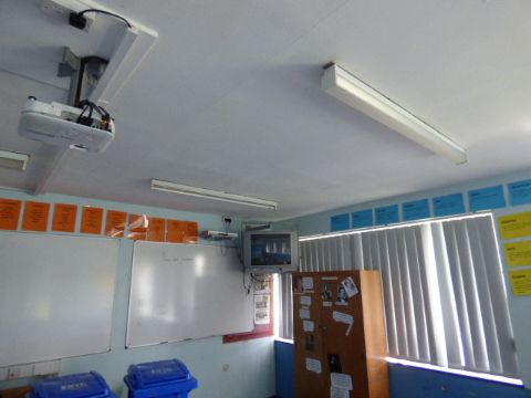 *Contents of Classroom Which Includes; Epson EB-X11 LCD Projector, Whiteboards, Goodmans TV with Bracket, LG DVD Player, Vintage School Cupboard, Etc