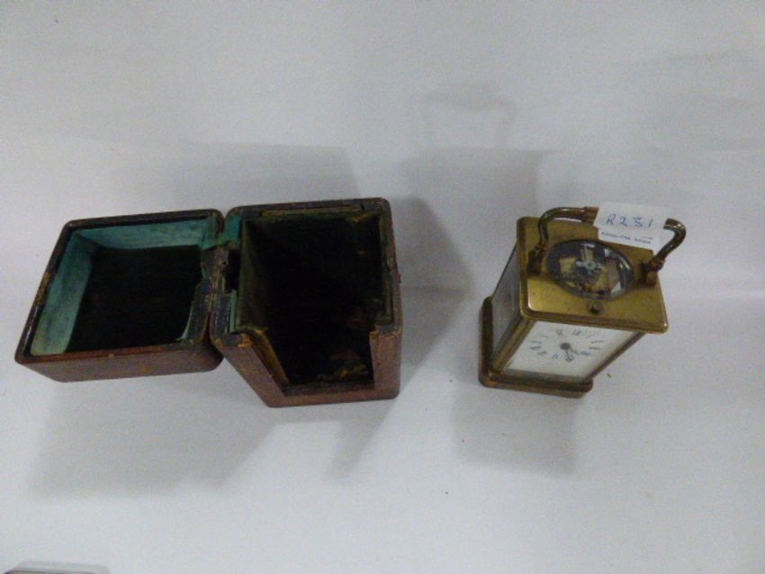 Brass Carriage Clock with Chime, Carriage Container, Box and Key (Makers Mark Faded)