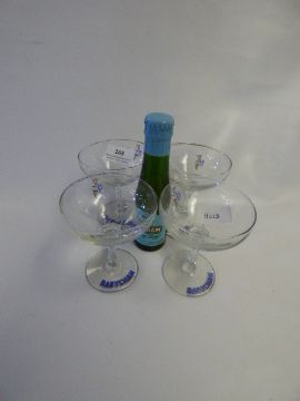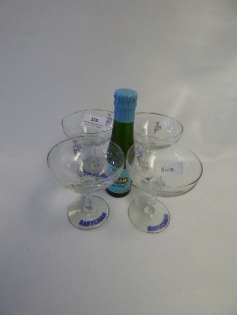 4 Champagne Babycham Glasses and a Babycham Bottle