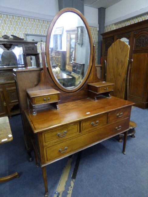 Mahogany Inlaid Dressing Table with Large Oval Mirror