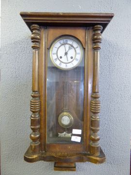 Walnut Cased Regulator Wall Clock with Roman Numeral Enamel Dial