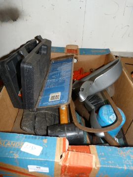 Box Containing Assorted Drills, Rubber Mallets, Hand Tools, Etc