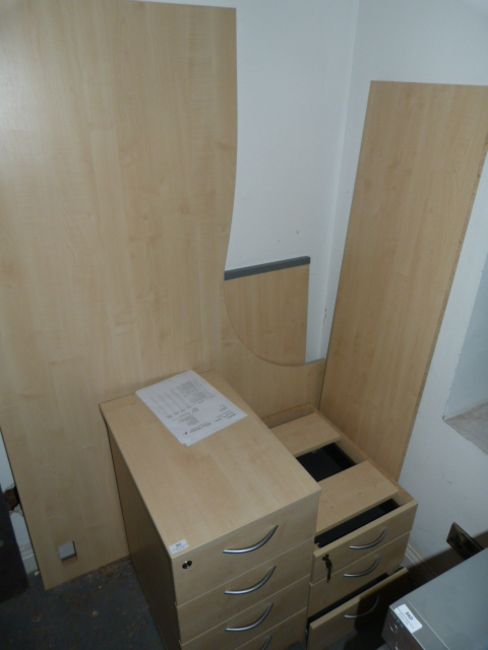 Flat Pack L-Shaped Desk with Drawer Pedestal and Stand Alone Four Drawer Pedestal