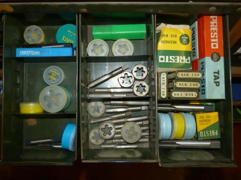 *Contents of Three Drawers Which Includes Whitworth Taps and Dies 9/16-1.25"