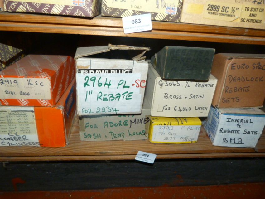 *Eleven Boxes of Brass and Other Rebated lock Components