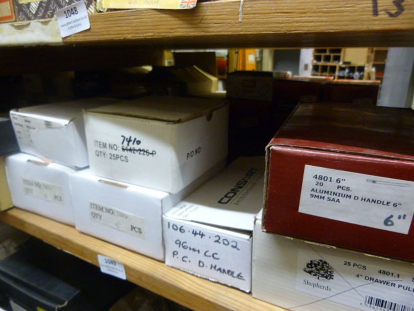 *Nine Boxes of Assorted Drawer Pulls, Tee Bar Handles, Etc