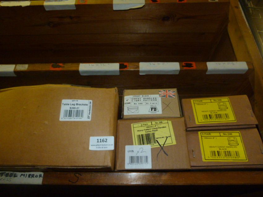 *Five Boxes of Table Leg Brackets and Chest Handles