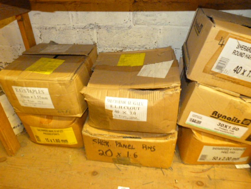 *Seven Boxes of Panel Pins, Clout Nails, Staples, Etc