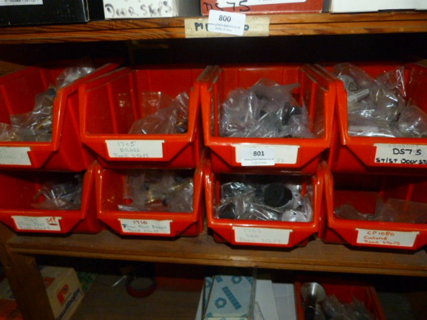 *8 Plastic Boxes Containing Assorted Brass and Aluminium Door Stops and 3 Boxes Containing Magnetic Door Holders, Door Stops, Etc