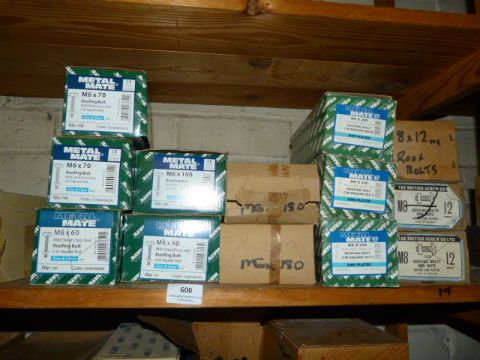*9 Boxes of Assorted Mild Steel Roofing Bolts with Nuts in Various Sizes