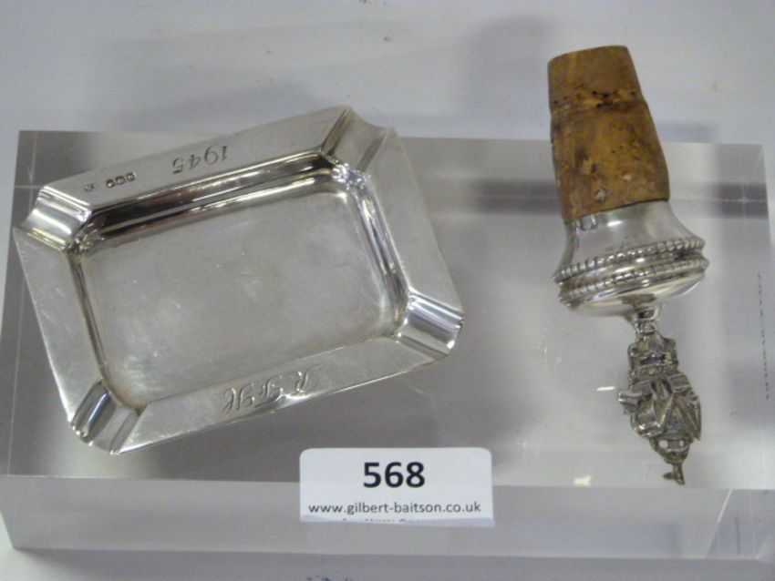 Silver Ashtray (Approx 41g) and a Bottle Stopper