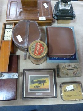 Selection of Ink Wells, Dominoes, Tins, Etc