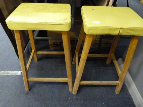 Pair of Beech Kitchen Stools with Upholstered Seats