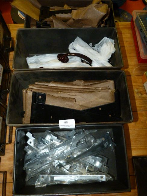 *Four Boxes Containing T-Hinges, Door Handles, Etc