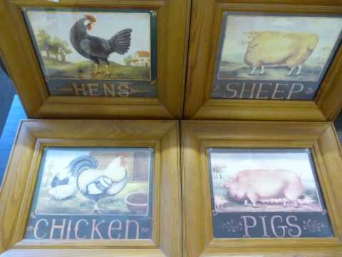 SET OF FOUR PINE FRAMED PRINTS OF FARM ANIMALS