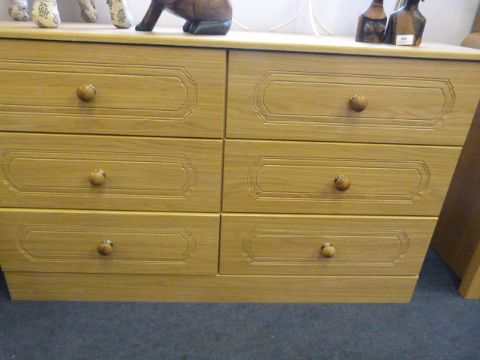 *LIGHT OAK SIX DRAWER CHEST OF DRAWERS