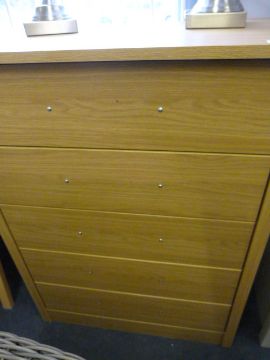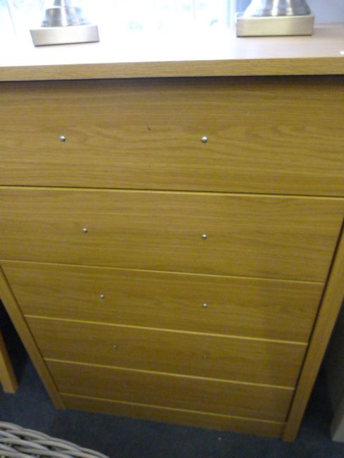*LIGHT OAK FIVE HEIGHT CHEST OF DRAWERS