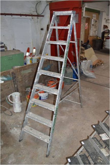 Aluminum and Steel Scaffolds, Lightweight Batons, Steps and Ladders, Paste Tables, Work Benches and Stock of Paints.