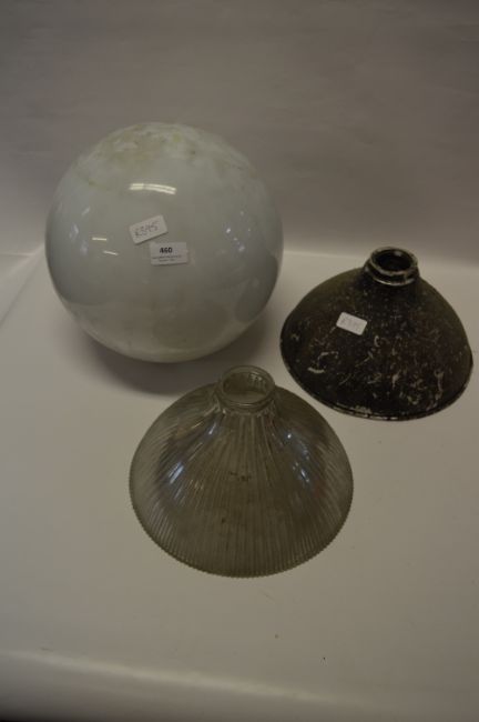 White Glass Globe Ceiling Light and Two Reeded Glass Ceiling Lights