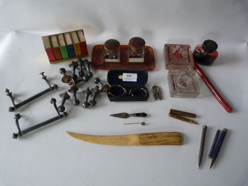 Tray of Ink Stands, Tins and Drawer Handle Furniture