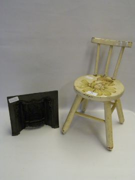 Small Childs Chair and a Miniature Cast Iron Fire Insert