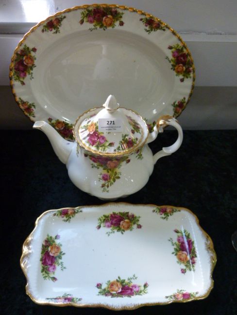 Royal Albert Country Roses Teapot, Meat Plate and a Dish