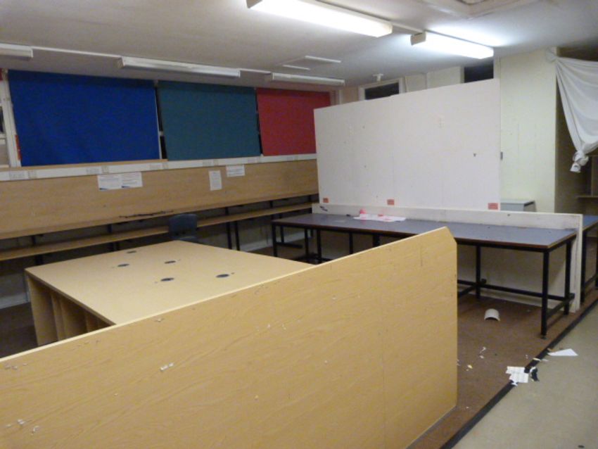 *Contents of The Art Room Including Assorted Decorative Chipboard Panels, Dry Whiteboards, School Desks and Split Level Work Station as Fitted to Classroom