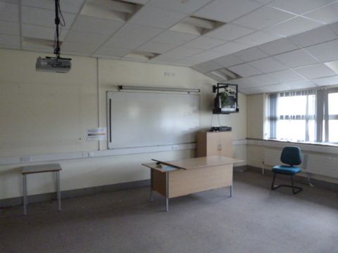 *Contents of Room U43 Which Includes; Epson EMP822H LCD Projector, Dry Whiteboard, Projector Screen, Wall Mounted TV, JVC Video, Light Oak Furniture, etc.
