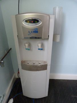 *Water Cooler and a Light Oak Side Table