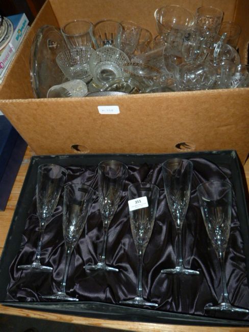 Box Assorted Glassware Including a Set of Six Thomas Webb Cut Glass Flutes, etc.