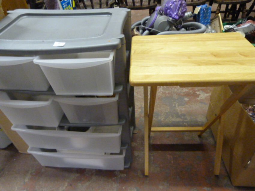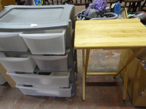 Set of Plastic Storage Drawers and a Beech Folding Table