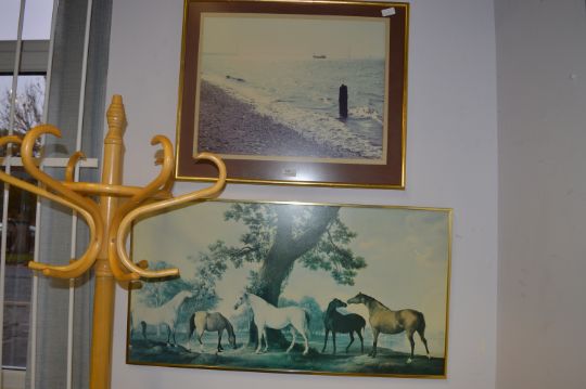 Framed Photo "Humber Bridge" and a Print of Horses