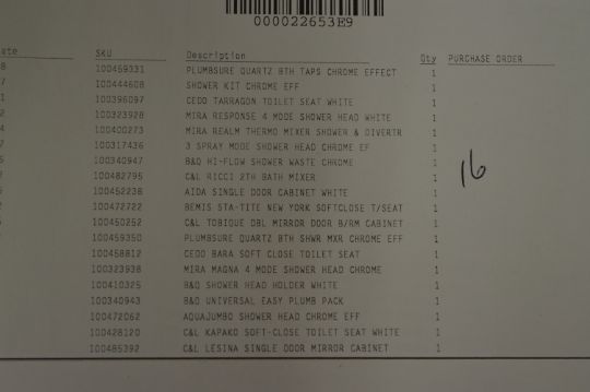 Pallet of Mira Showers, Toilet Seats, Mirrored Bathroom Cabinets, Etc. 73866 Condition Unchecked