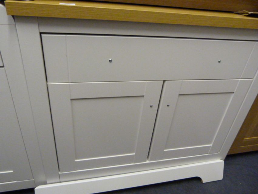 *White Single Drawer, Two Door Sideboard with Light Oak Top