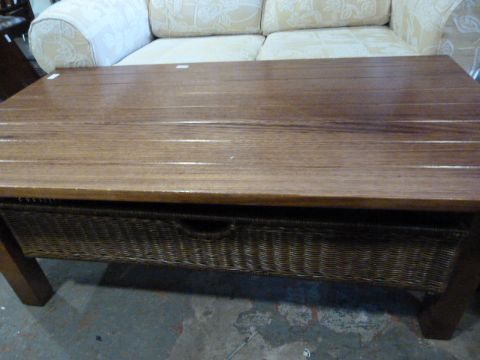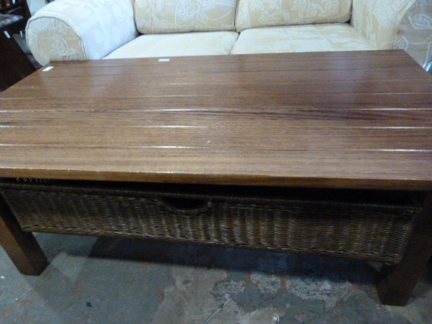 Large Oak Coffee Table with Basket Drawer