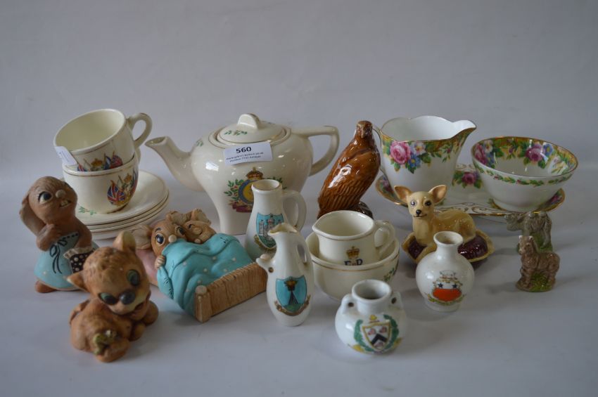 Commemorative Tea Set, Royal Albert Trio, Crested Ware, Pendelfin Figures